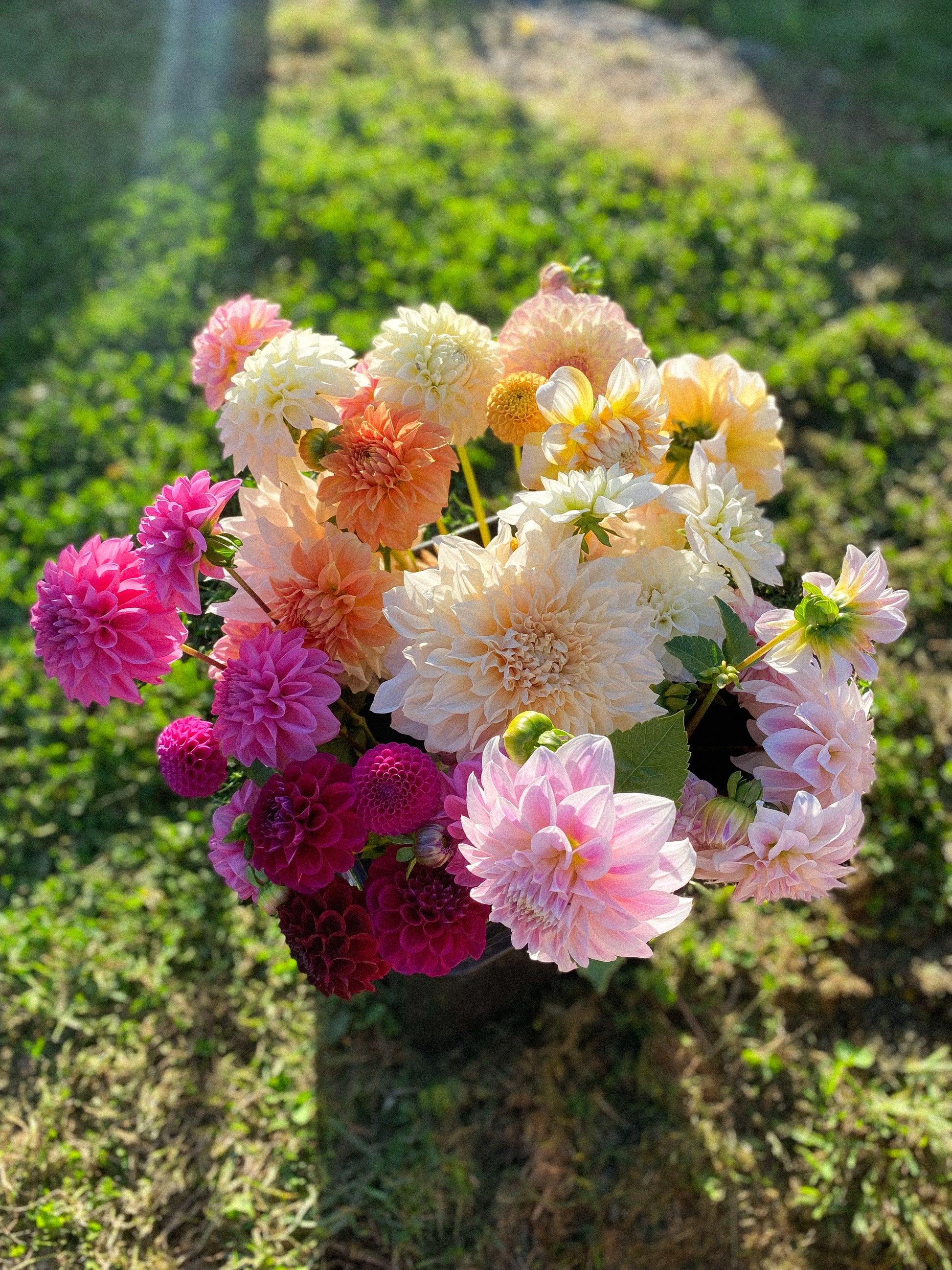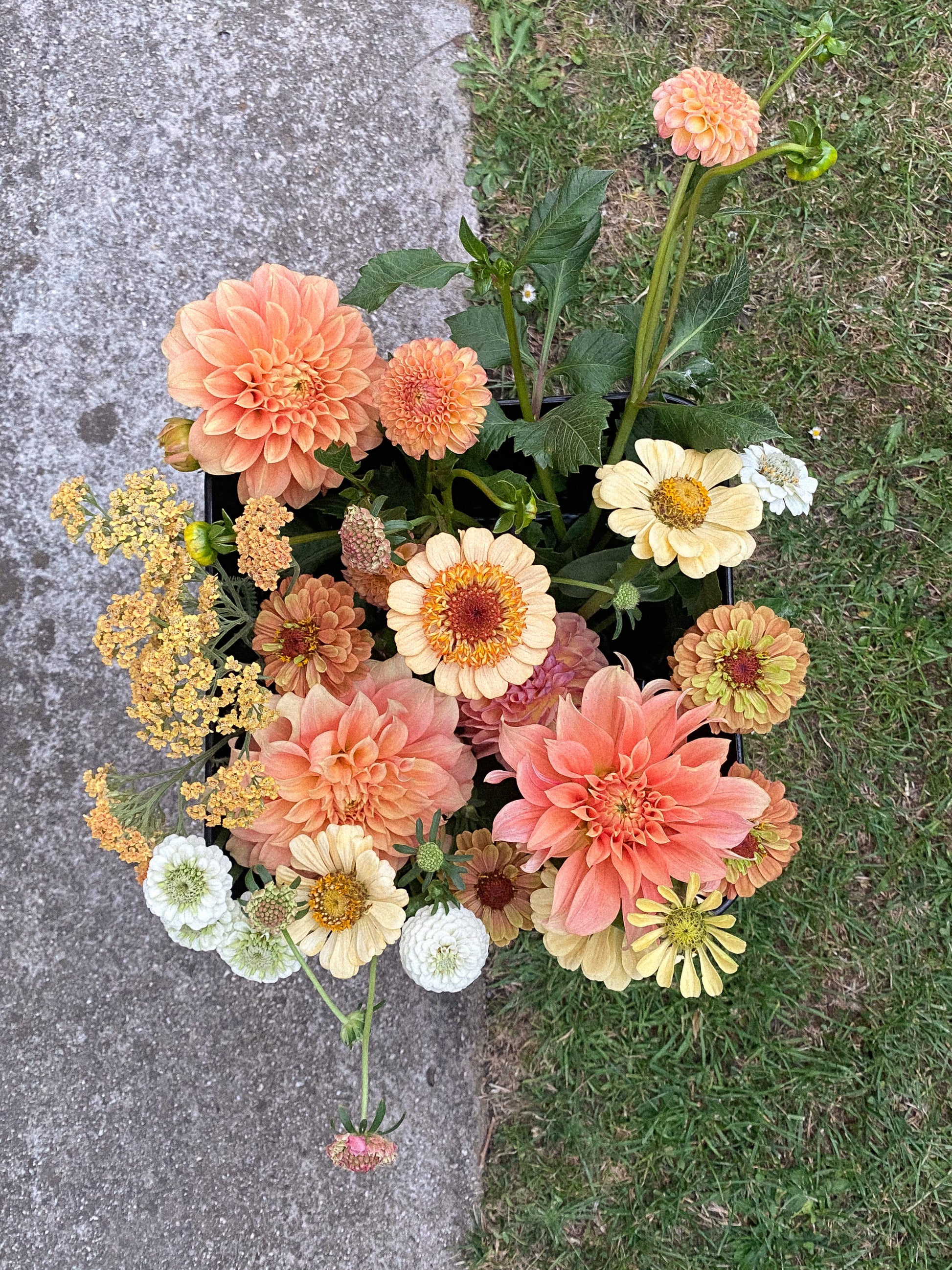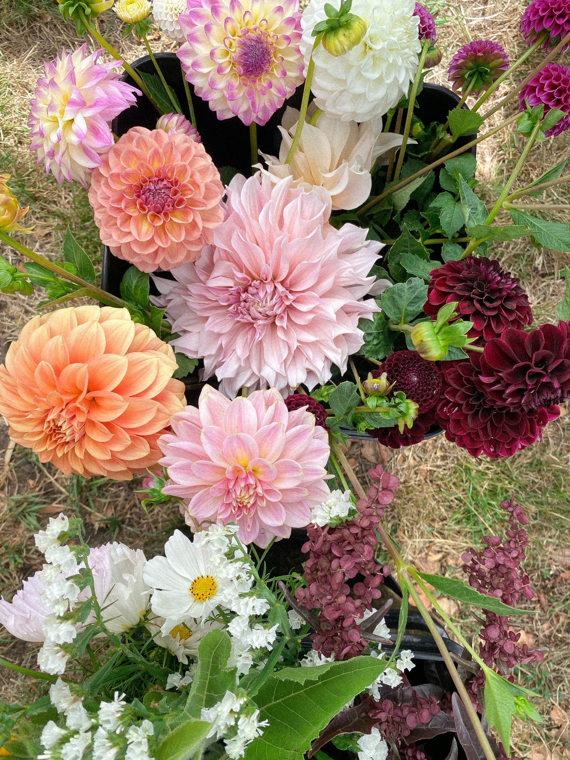 Our mixed buckets will have a variety of focal and filler flowers with the option of adding foliage or purchasing separately. Please see our seasonal availability + expectations page for a loose guide of what is available throughout the year. Given the nature of field grown, I don't guarantee specific flowers and foliage, however you're welcome to leave any requests in the notes section at checkout.