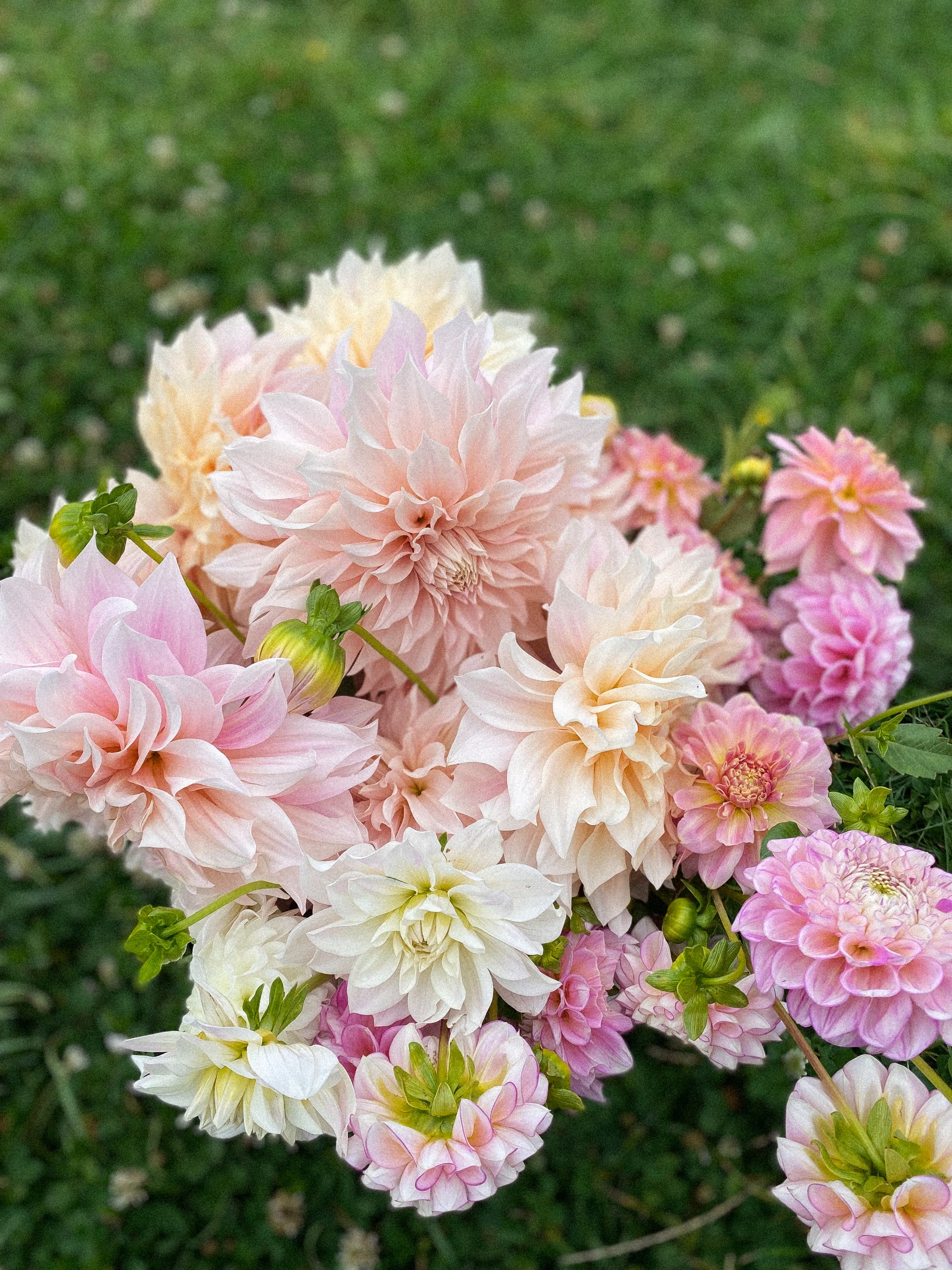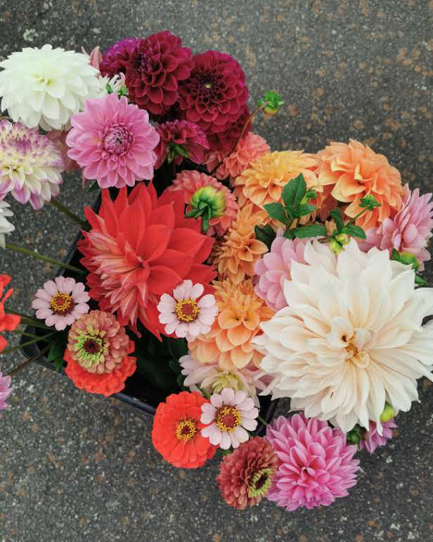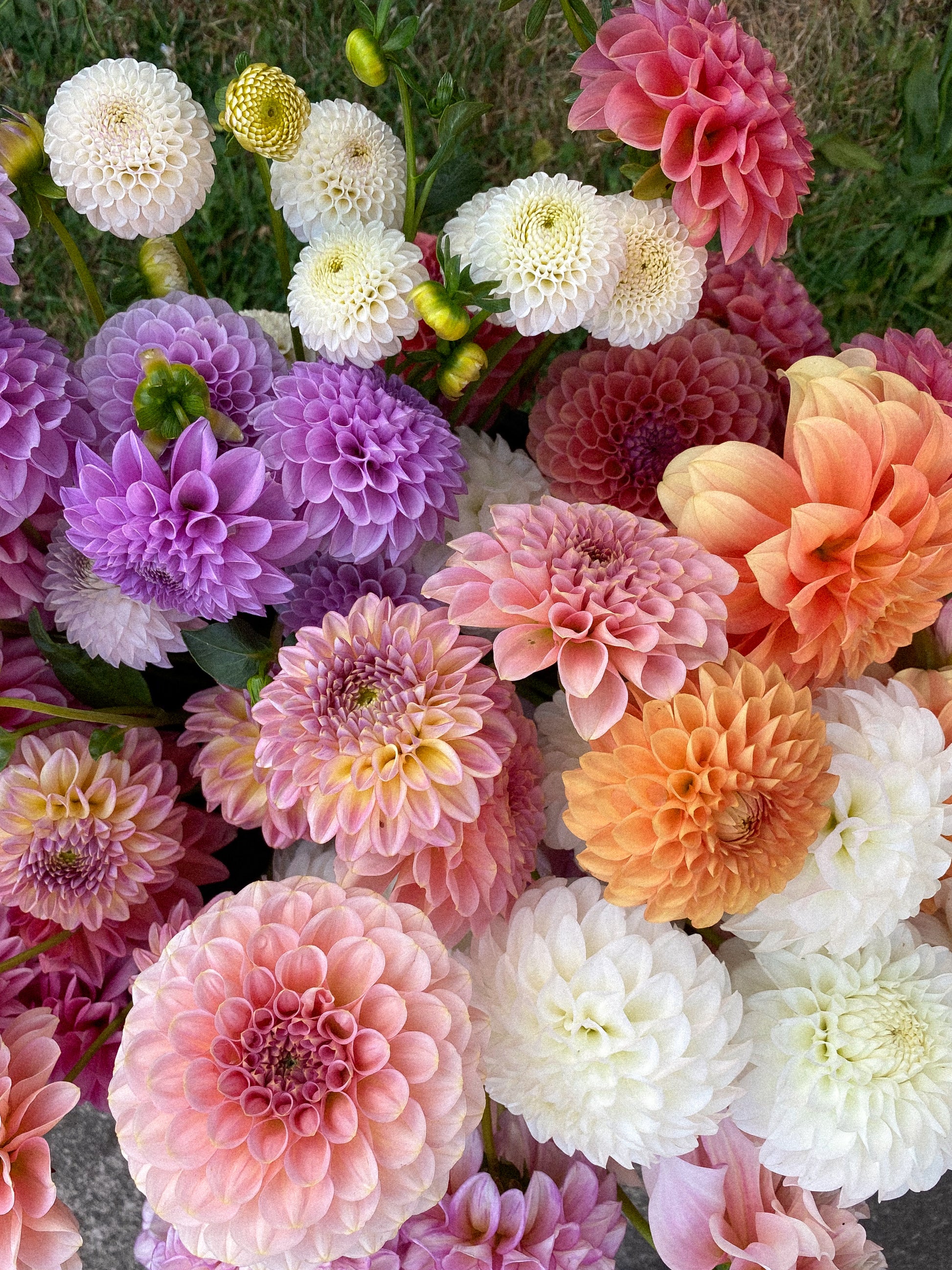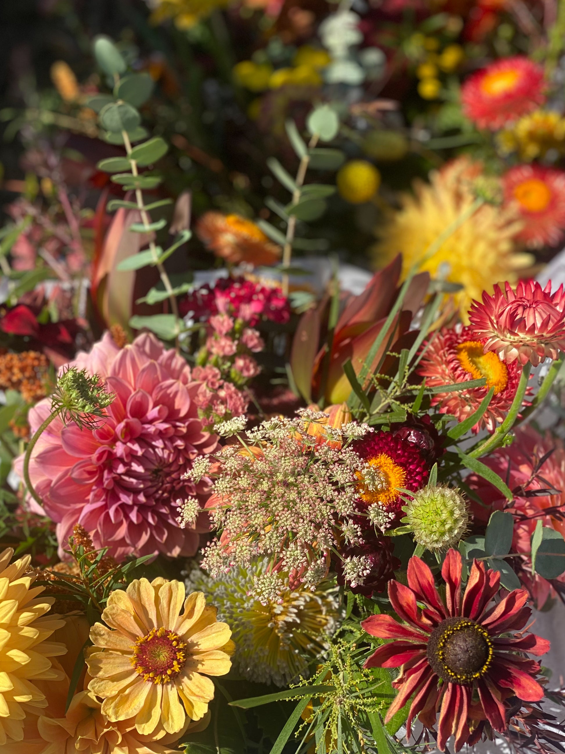 Our mixed buckets will have a variety of focal and filler flowers with the option of adding foliage or purchasing separately. Please see our seasonal availability + expectations page for a loose guide of what is available throughout the year. Given the nature of field grown, I don't guarantee specific flowers and foliage, however you're welcome to leave any requests in the notes section at checkout.