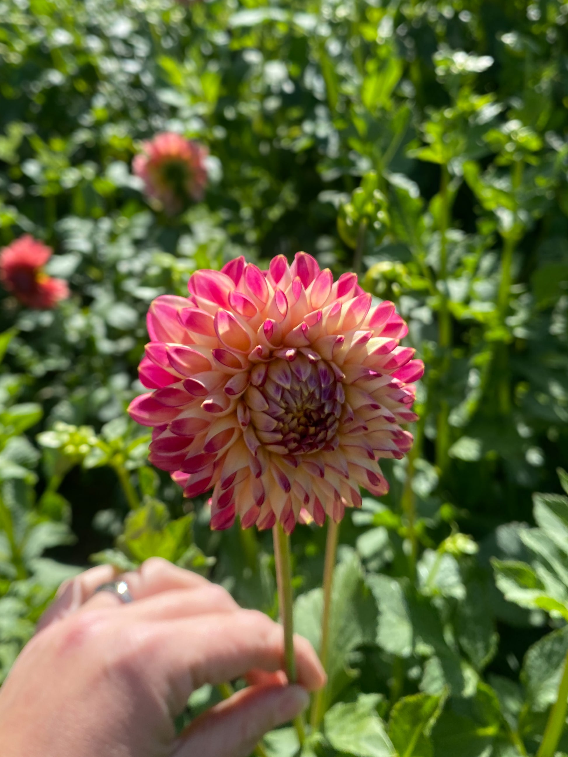 Notes: Striking bi-colour of pink over creamy yellow