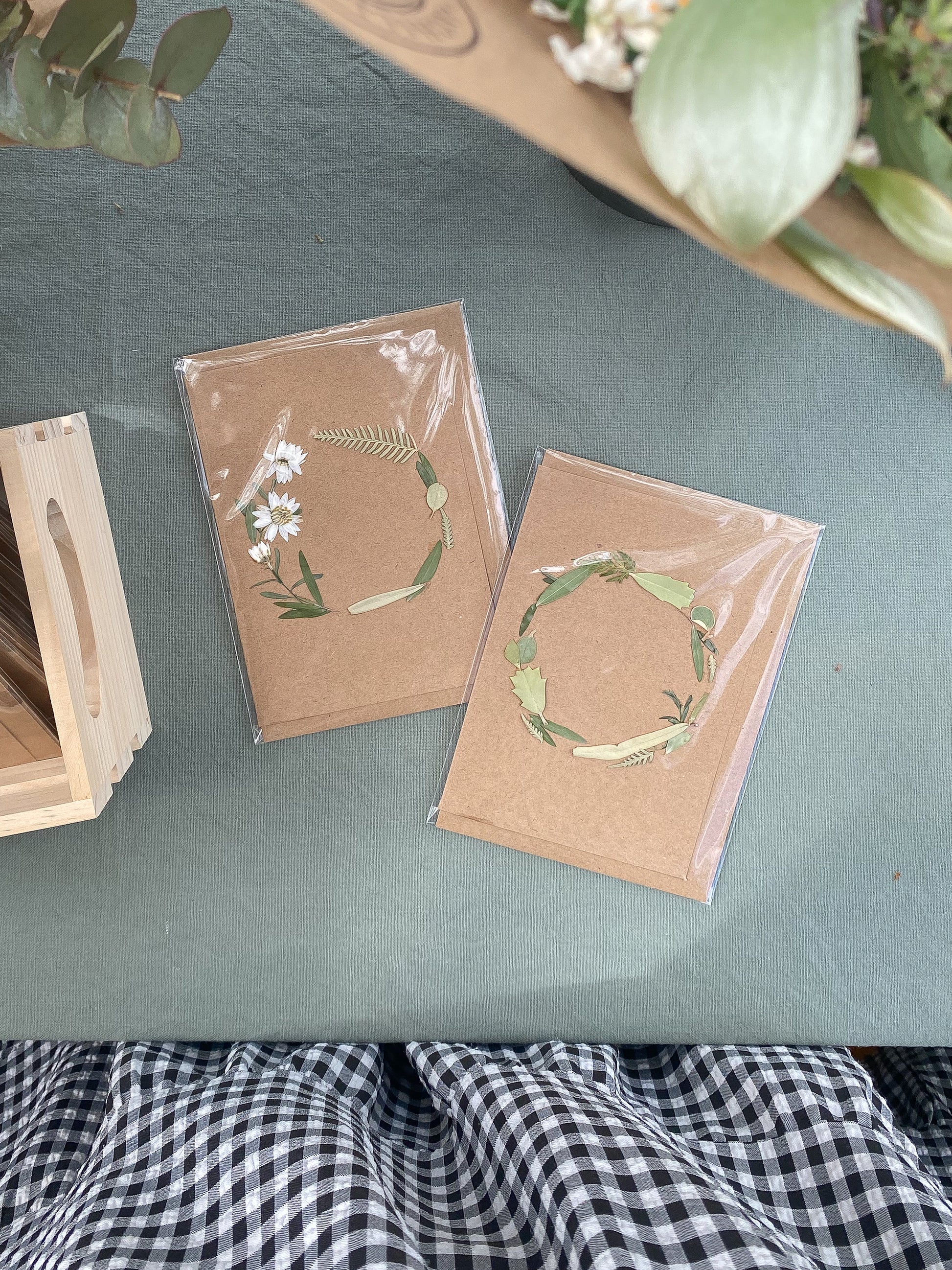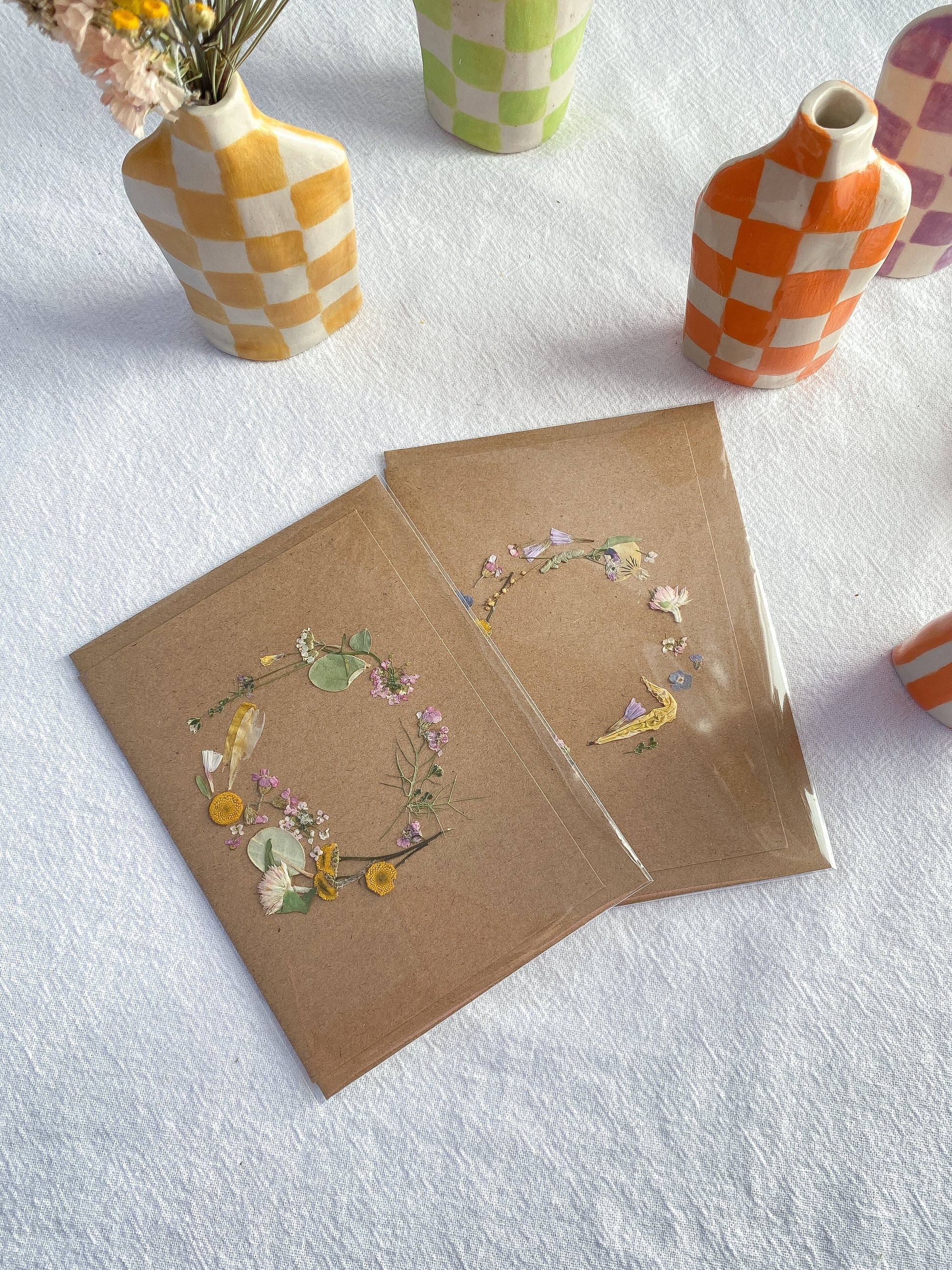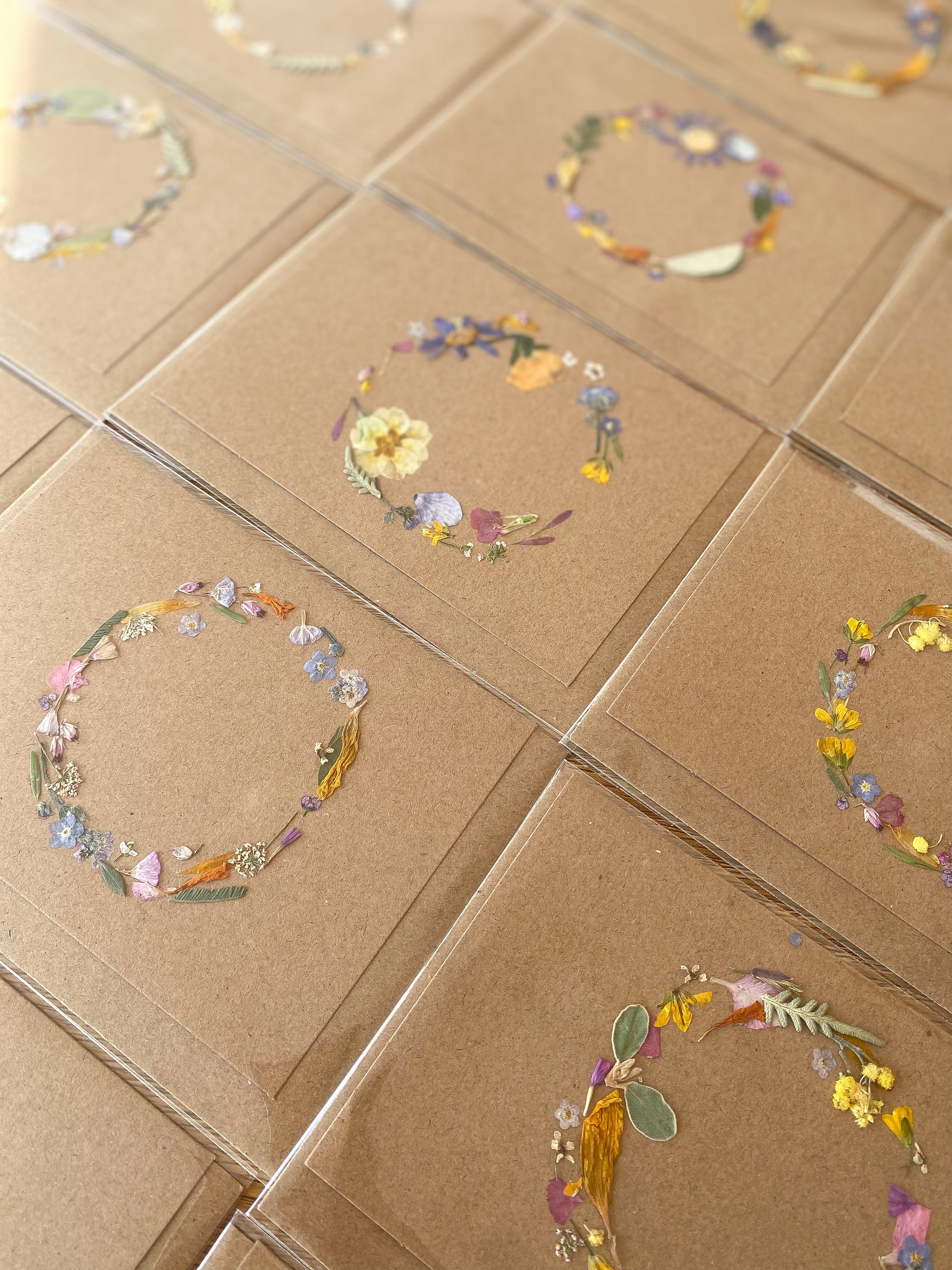 Grown and collected by us or responsibly foraged, we preserve our blooms in paper lined presses, wait and then thoughtfully design each card.