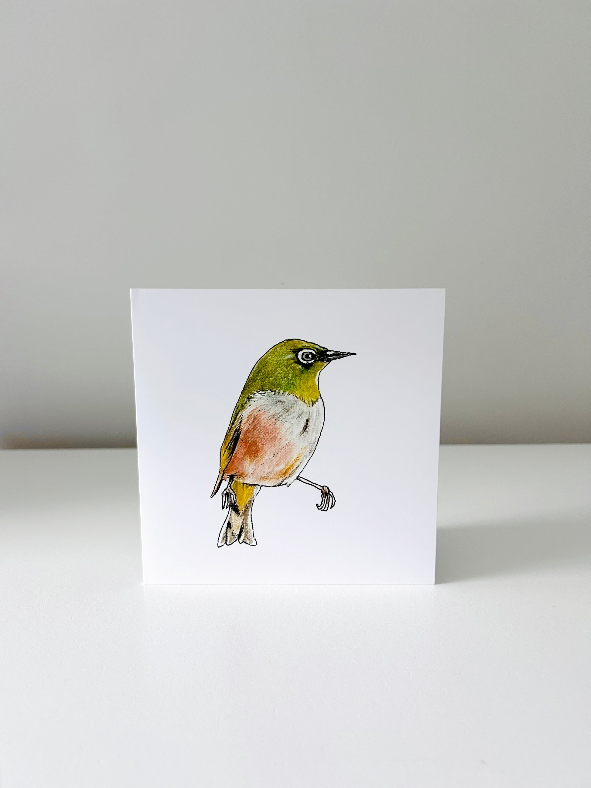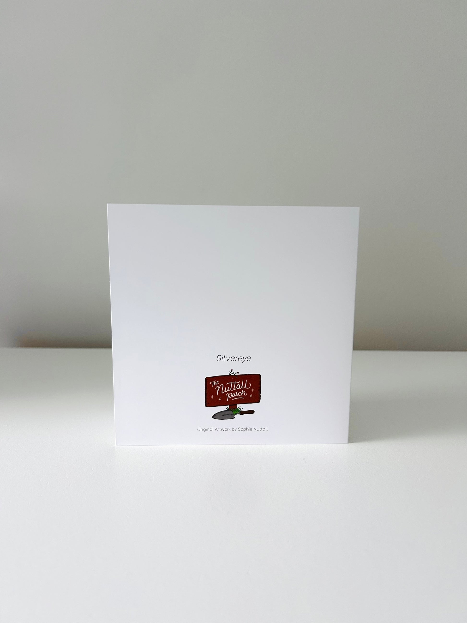 14cm x 14cm high quality print card, blank inside, cards are packaged in plant based cello sleeves with a white envelope.
